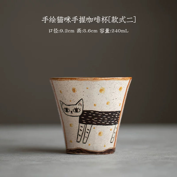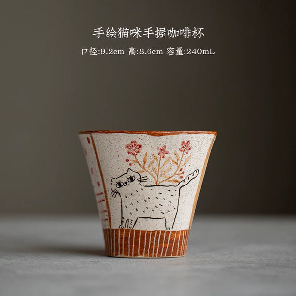 Handmade hand-painted underglaze cat coffee cup original ceramic simple cute teacup water cup girlfriend gift