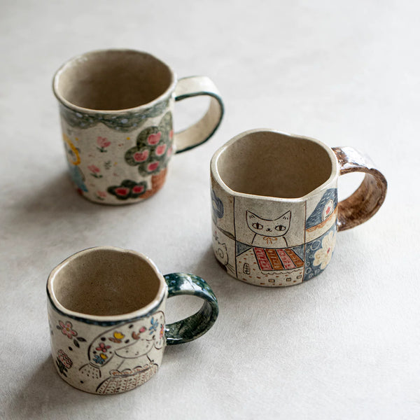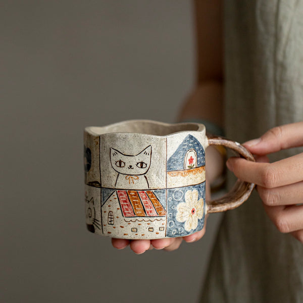 Handmade original screen underglaze color hand-painted cat mug coffee cup water cup girlfriend gift with gift box