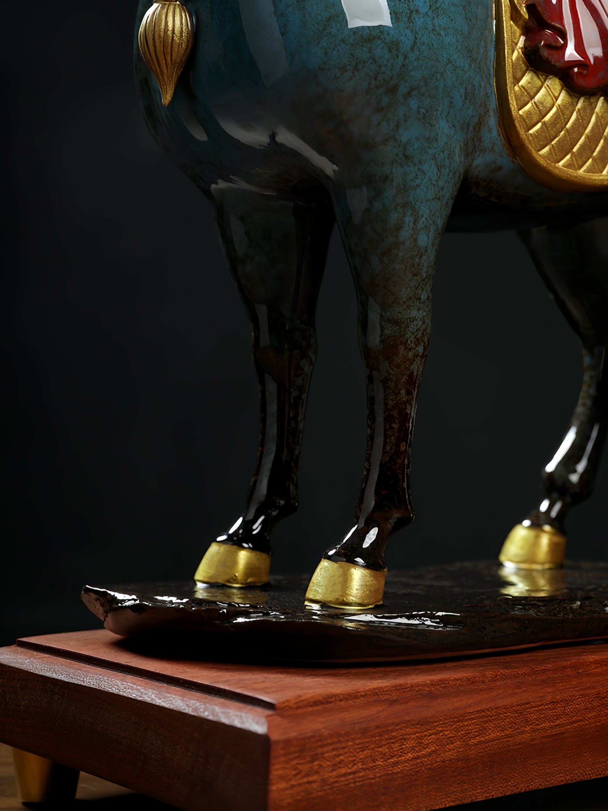 Ceramic Horse Ornament “General's Horse” Home Decor Craft(Blue)