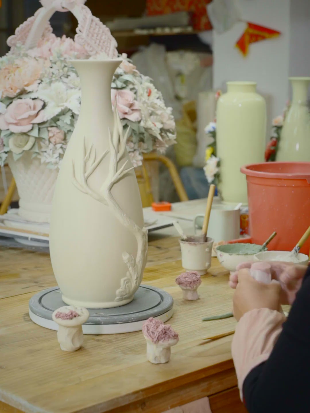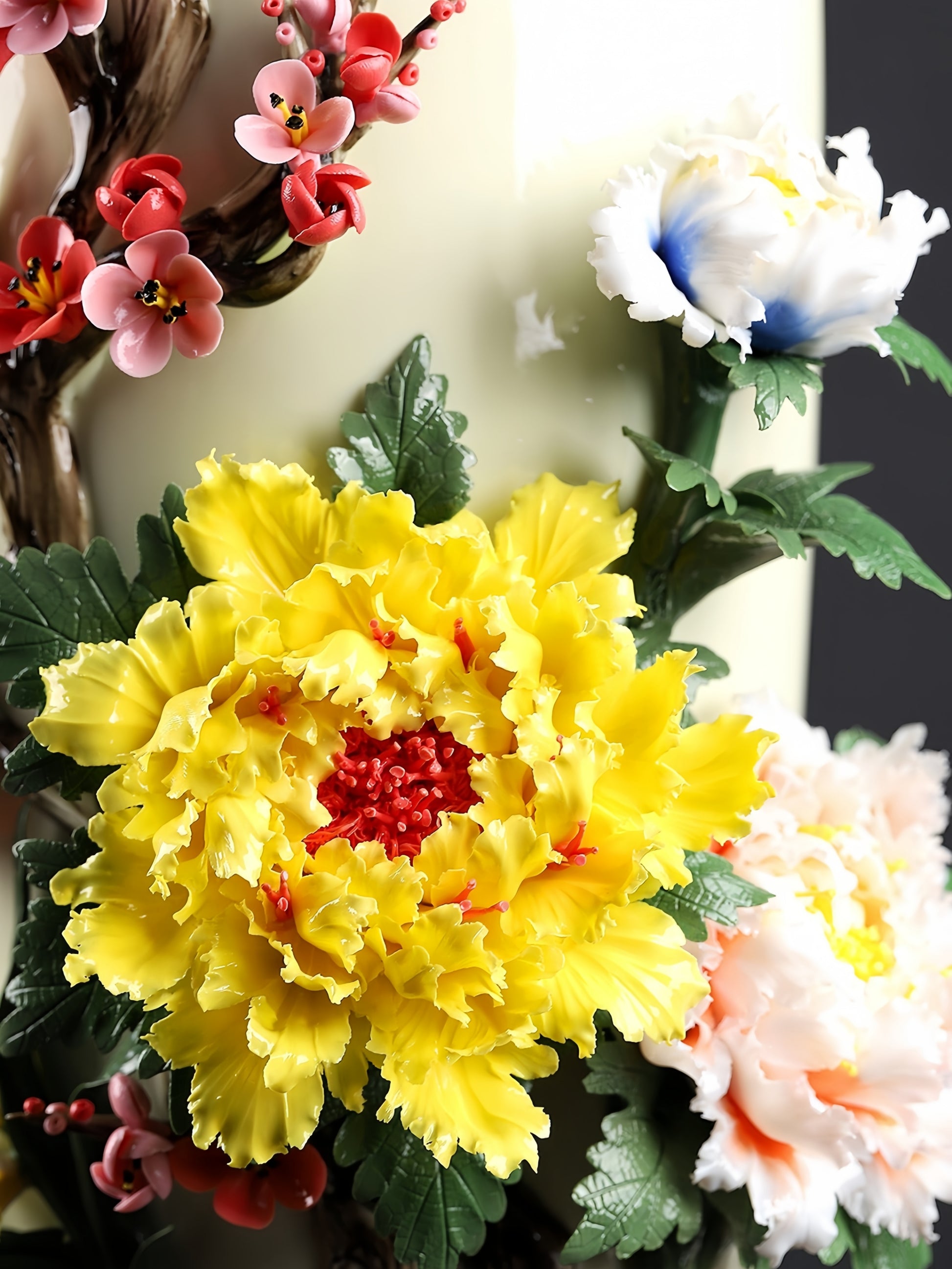 Handcrafted Chinese Ceramic Floral Vase Ornament